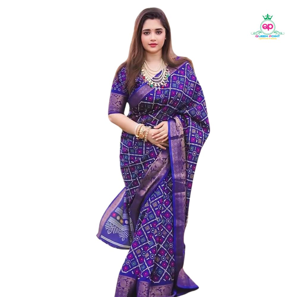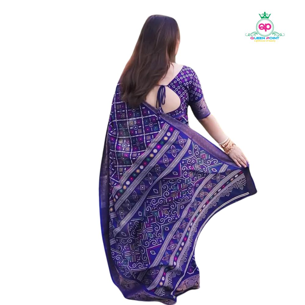 ছাড়ডিজিটাল প্রিন্ট জাপানি সিল্ক অর্পিতা শাড়ি + ম্যাচিং ব্লাউজ পিচ